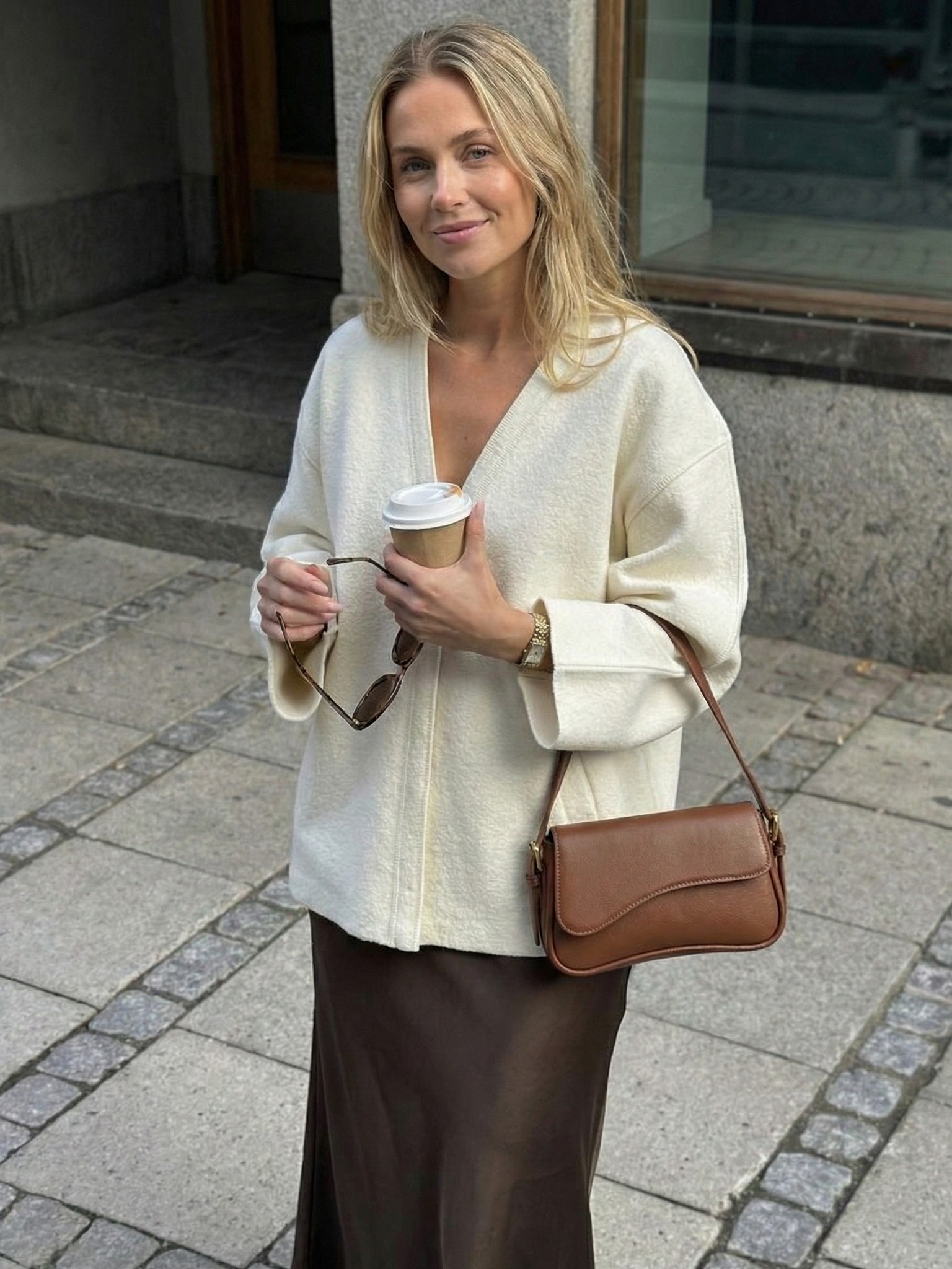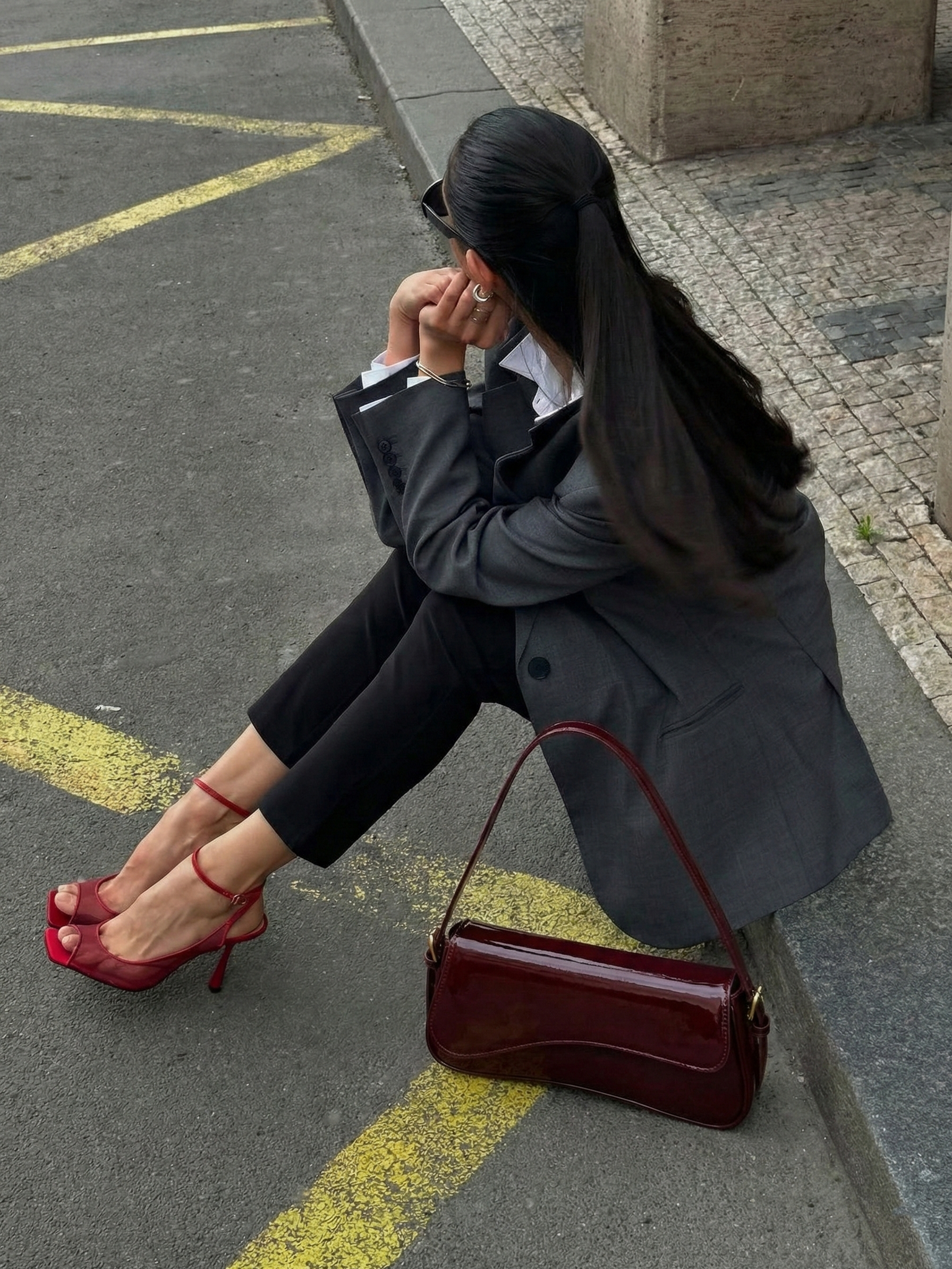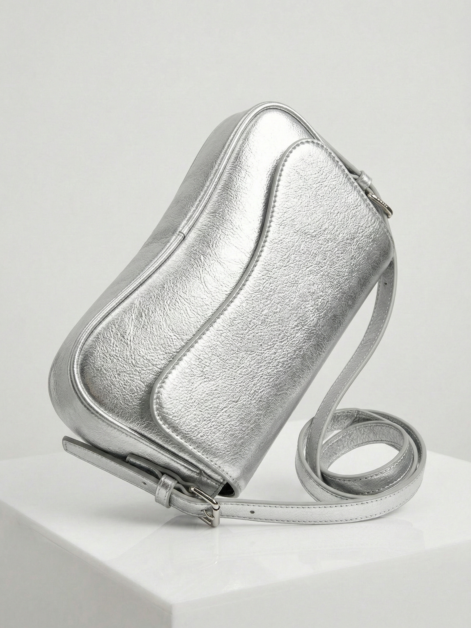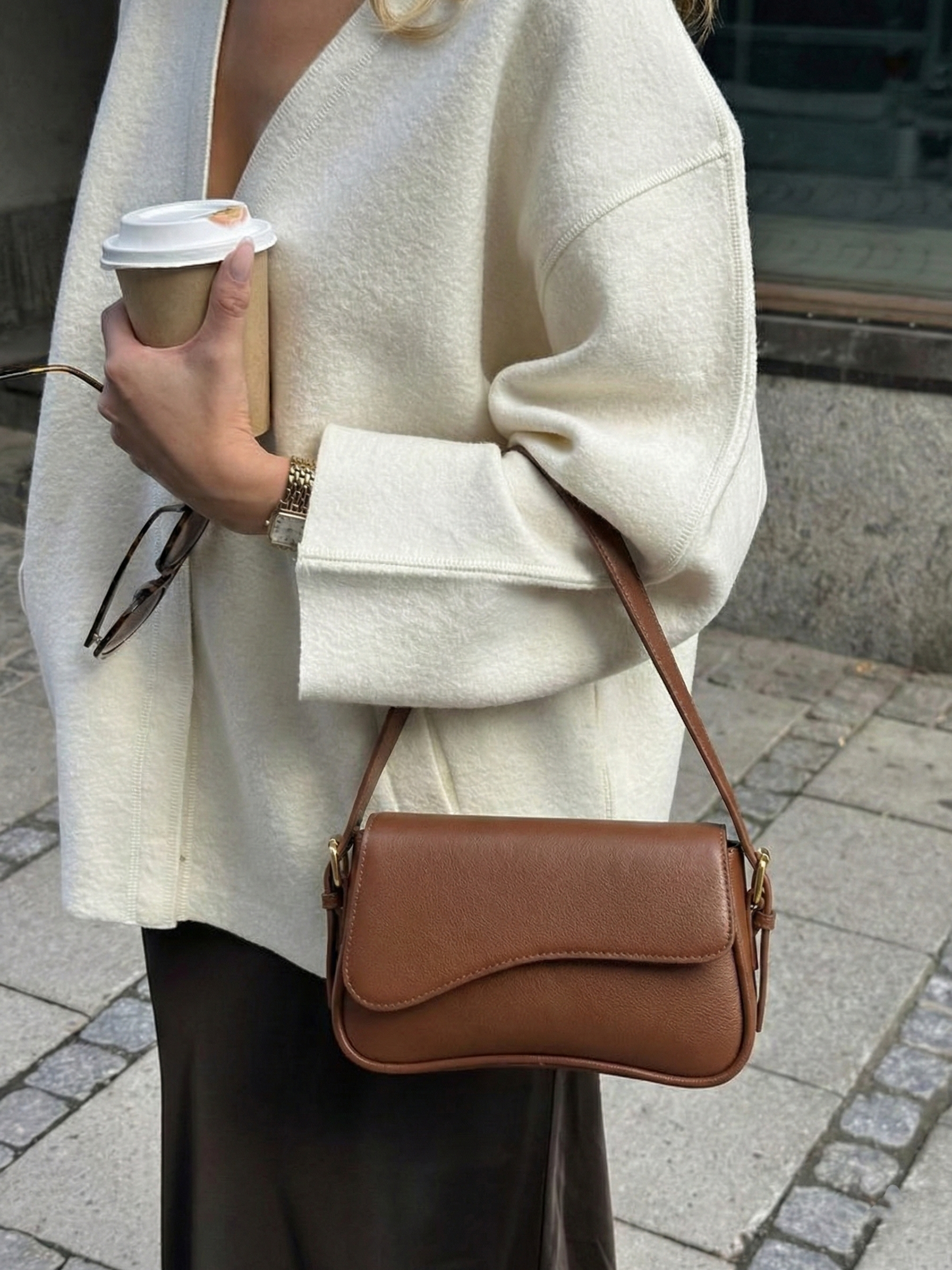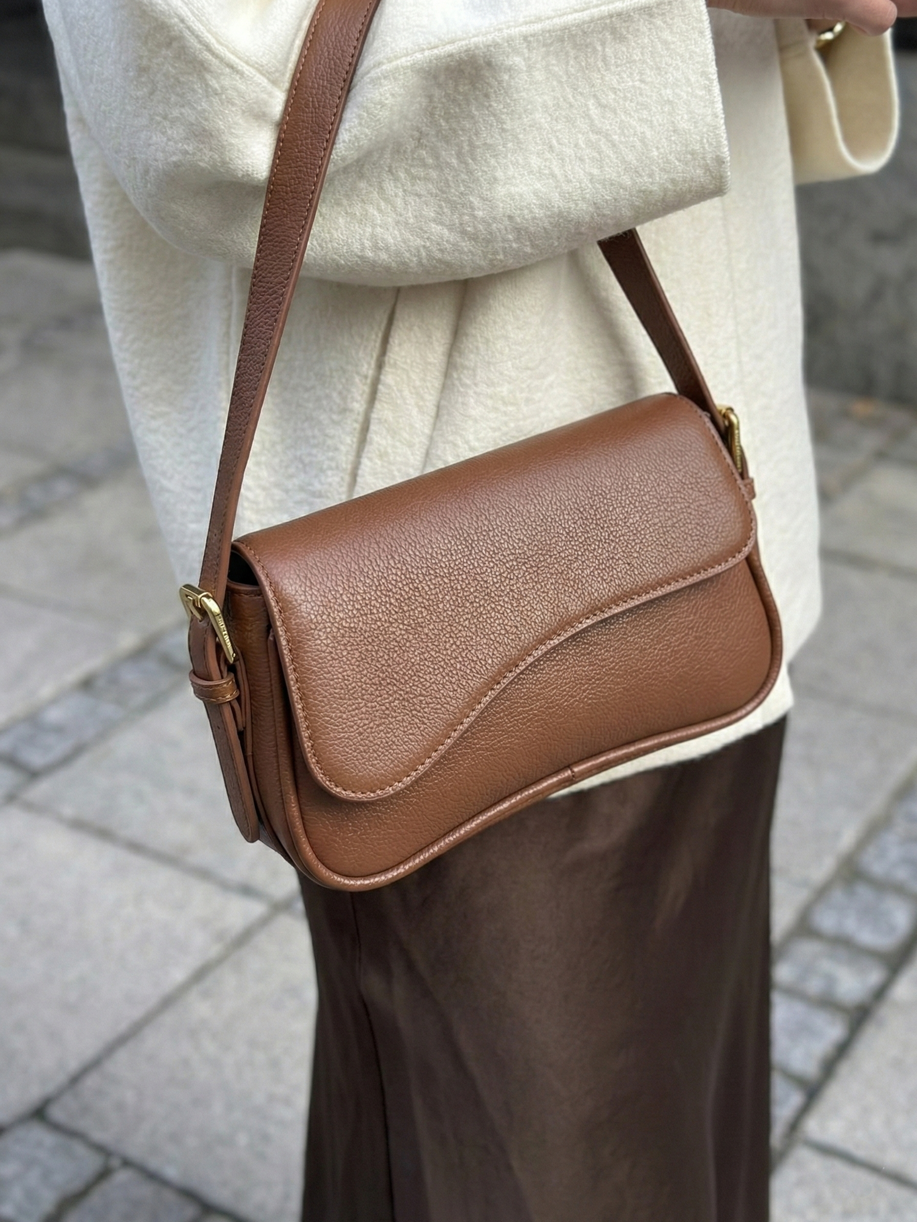 Sleek curved shoulder bag silhouette