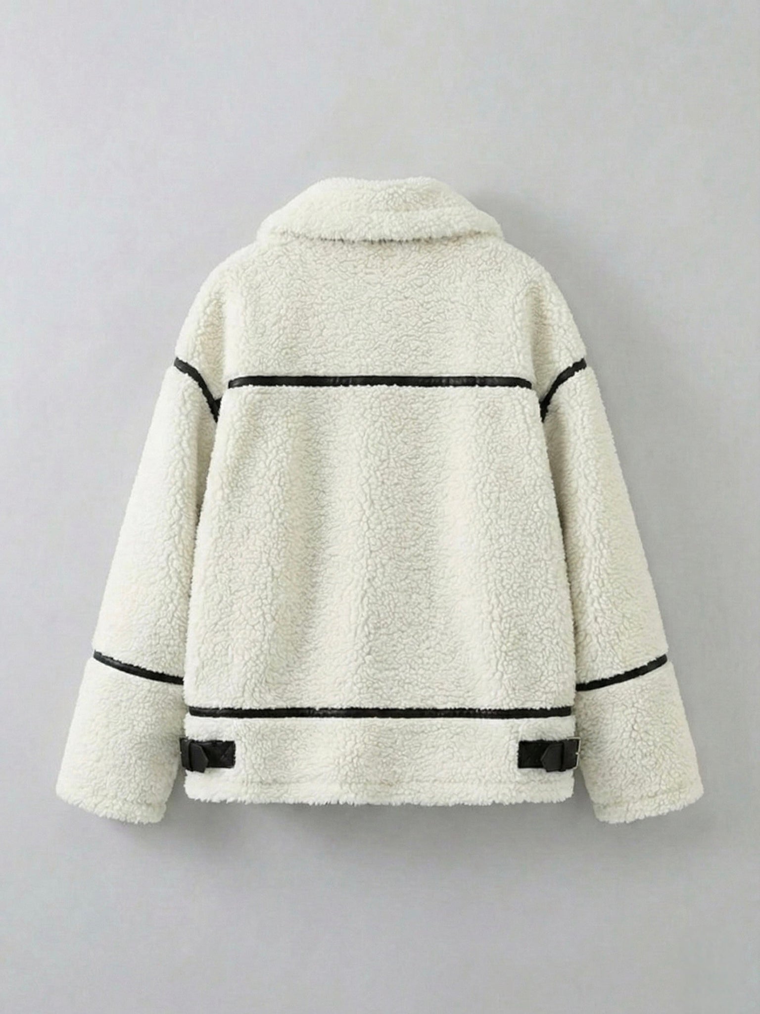 The Mathilda Faux Shearling Zip-Up Jacket is designed to keep you warm while offering a modern, chic silhouette. Featuring a soft shearling texture with contrasting black trim, this jacket combines style and comfort with a zip-up front and sleek design.